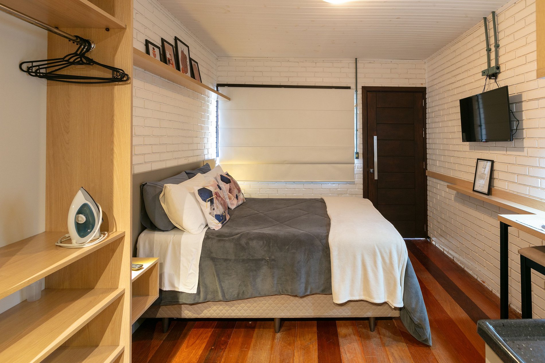 Ambiente Integrado: Sala, quarto e minicozinha no mesmo espaço para maior praticidade e conforto. Possui ar condicionado.
