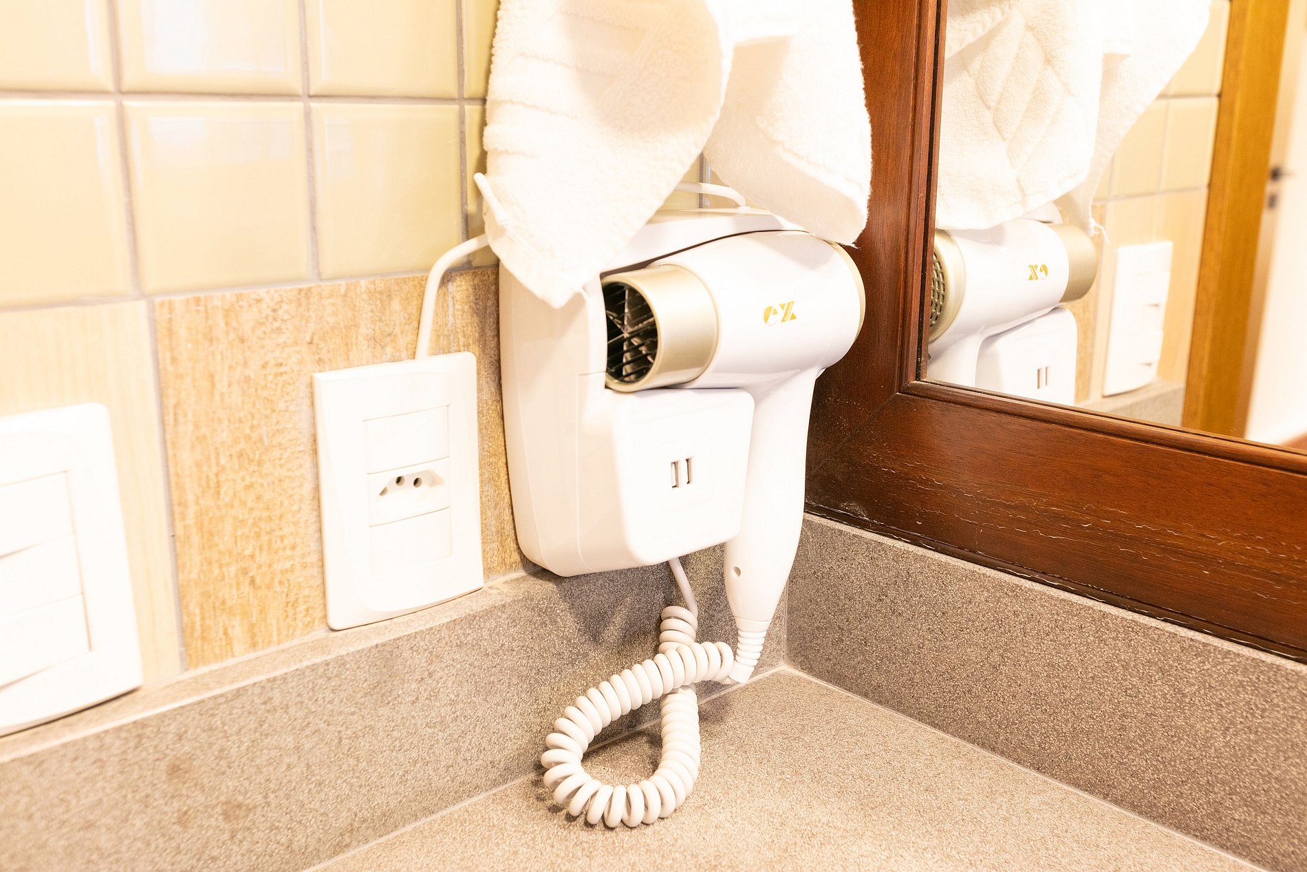 Banheiro: Banheiro clean e funcional, com box de vidro e secador de cabelo.